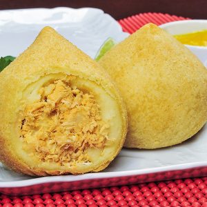 Coxinha de Frango Defumado, a nossa delícia de frango agora ganhou a versão Defumada. Uma explosão de sabor a cada mordida.